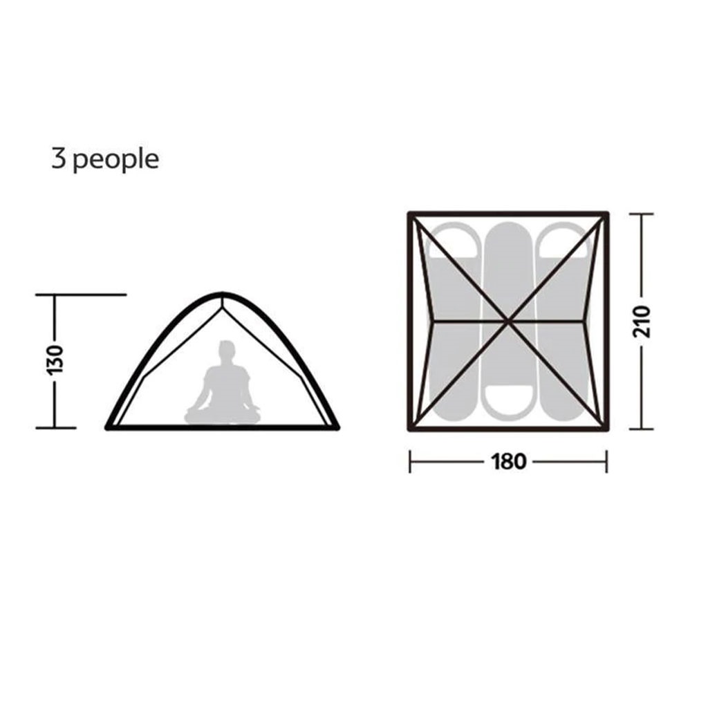 فضای داخلی چادر مسافرتی نیچرهایک کد NH21ZP008 برای سه نفر در حالت خوابیده مناسب است و طراحی آن بهگونهای انجام شده که پارچه رویی چادر امکان استفاده به عنوان سایبان را نیز فراهم میکند. این ویژگی باعث میشود چادر در موقعیتهای مختلف، کاربری بیشتری داشته باشد و برای استراحت، نشستن یا پختوپز فضای اضافی در اختیار مخاطب قرار دهد.