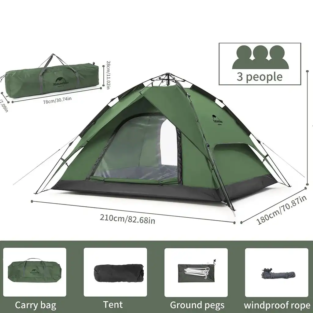 چادر Naturehike کد NH21ZP008 از نوع اتوماتیک است و همین موضوع نصب و برپایی آن را بسیار سریع و آسان میکند. ساختار این مدل به گونهای طراحی شده که در برابر باد و شرایط سخت آبوهوایی مقاومت مناسبی داشته باشد و همچنین در برابر پارگی و آسیبهای احتمالی دوام بالایی از خود نشان دهد. به همین دلیل برای برنامههای مکرر و محیطهای متغیر گزینهای قابل اعتماد محسوب میشود.