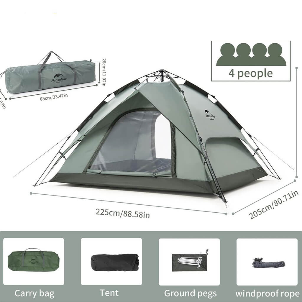 چادر Naturehike کد NH21ZP008 اتوماتیک است و همین موضوع باعث میشود فرآیند نصب و برپایی آن بسیار سریع، آسان و بدون دردسر انجام شود. ساختار این چادر استحکام خوبی در برابر باد و شرایط سخت آبوهوایی ایجاد میکند و بدنه آن نیز در برابر پارگی و آسیبهای احتمالی مقاومت بالایی دارد. به همین دلیل برای سفر، کمپینگ و طبیعتگردی انتخابی قابلاعتماد محسوب میشود.