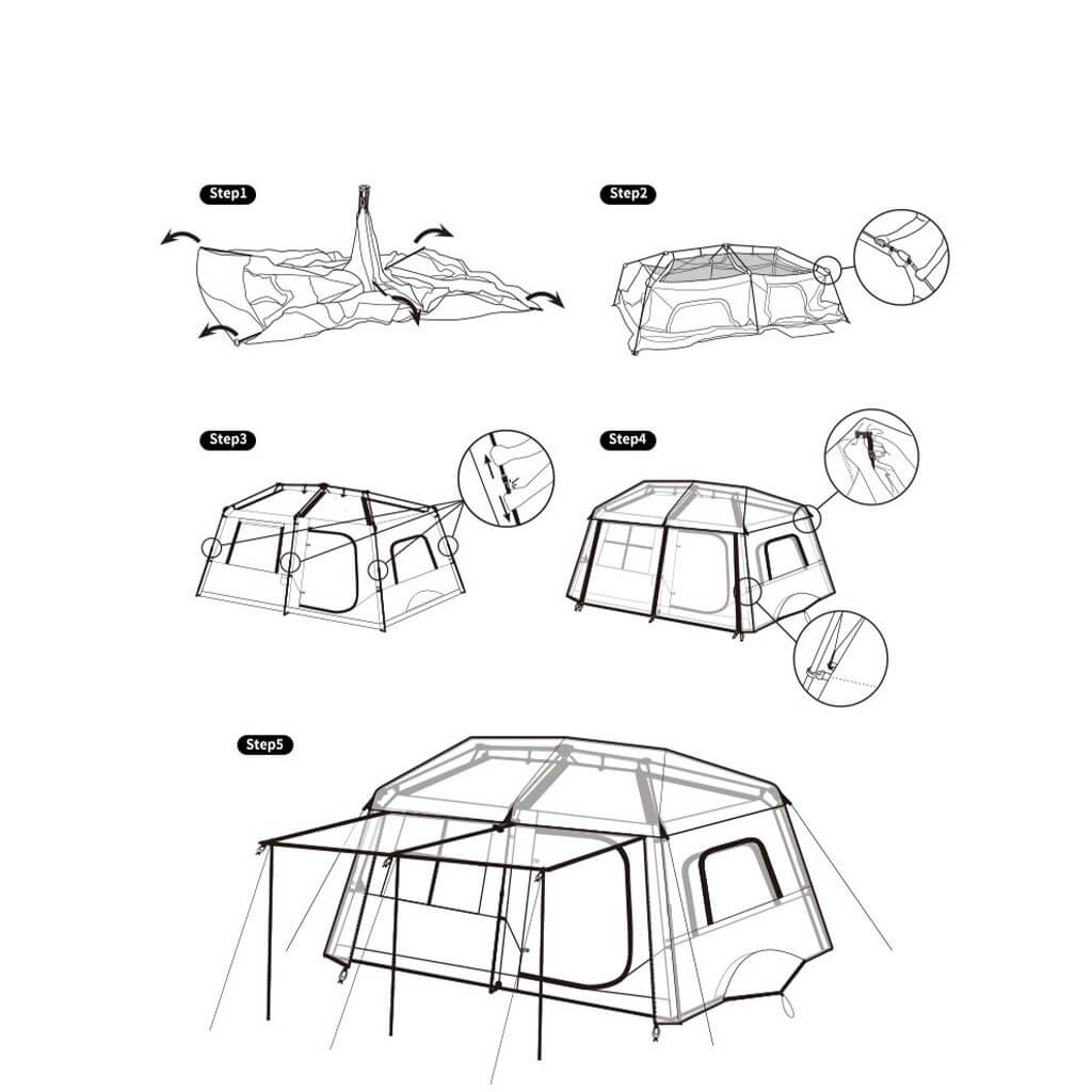 اسکلت این چادر از از میله‌های محکم و مقاومی ساخته شده است که می‌توانند در برابر بادهای شدید مقاومت کنند و در استفاده‌های بلند مدت باعث اذیت کاربر نشوند. در کنار این اسکلت محکم، باید به قابلیت نصب سریع این چادر اشاره کرد که همه چیز را راحت می‌کند.