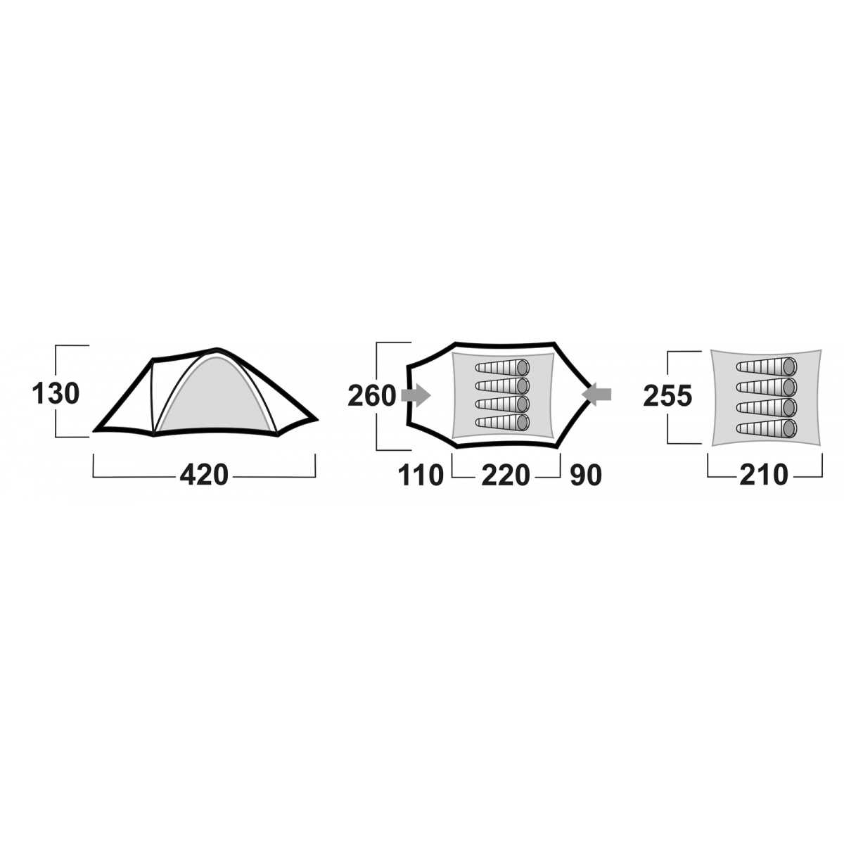 وزن این چادر هاسکی چهار نفره 4900 گرم است. ابعاد آن در حالت باز شده 130*420*260 سانتیمتر و در حالت بسته بندی 45*15 سانتیمتر است. وزن مناسب و ابعاد کم آن در حالت بستهبندی باعث میشوند تا چادر به راحتی در مسیرهای طولانی و دشوار همراه شما باشد.
