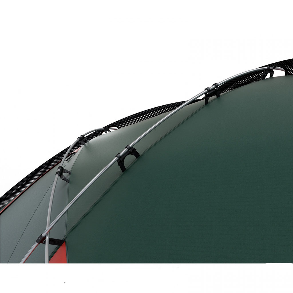 پوشش رویی از پارچه پلیاستر 210T ساخته شده است که دارای پوشش مقاوم PU با مقاومت 7000 میلیمتر است و پوشش داخلی این محصول ترکیبی از نایلون 190T و توری قابل تنفس است که باعث گردش هوای مناسب و جلوگیری از تعریق و رطوبت داخلی میشود. کف پارچه نیز از پلی استر 190T ساخته شده و در شرایط مرطوب نیز کاملا چادر را خشک نگه میدارد. تیرک های ساخته شده ی این محصول از آلیاژ آلومینیوم 7001 با قطر 8.5 میلیمتر هست که علاوه بر سبک بودن، استحکام بسیار زیادی دارند.