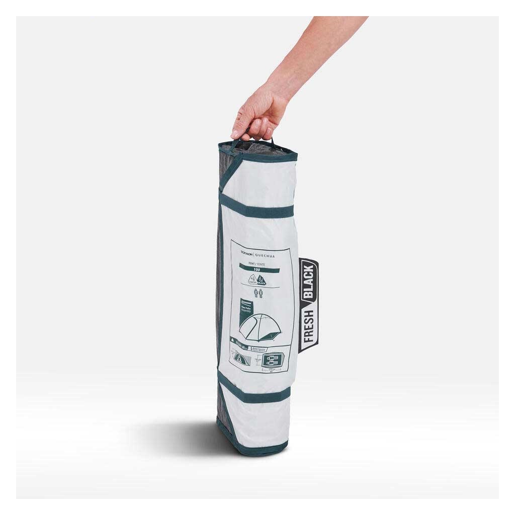 چادر مسافرتی کچوا مدل Fresh & Black MH100 برای حداقل دو نفر طراحی شده است. این چادر در برابر بارندگی، باد و نور مقاومت خوبی دارد و مناسب تابستان و روزهای گرم سال است. زیرا دارای فناوری Fresh & Black میباشد که علاوه بر اینکه از شما در برابر نور مسقیم و آفتاب محافظت میکند، باعث میشود داخل چادر خنکتر و تاریکتر باشد. این ویژگی شما را از گرمای محیط حفظ میکند.