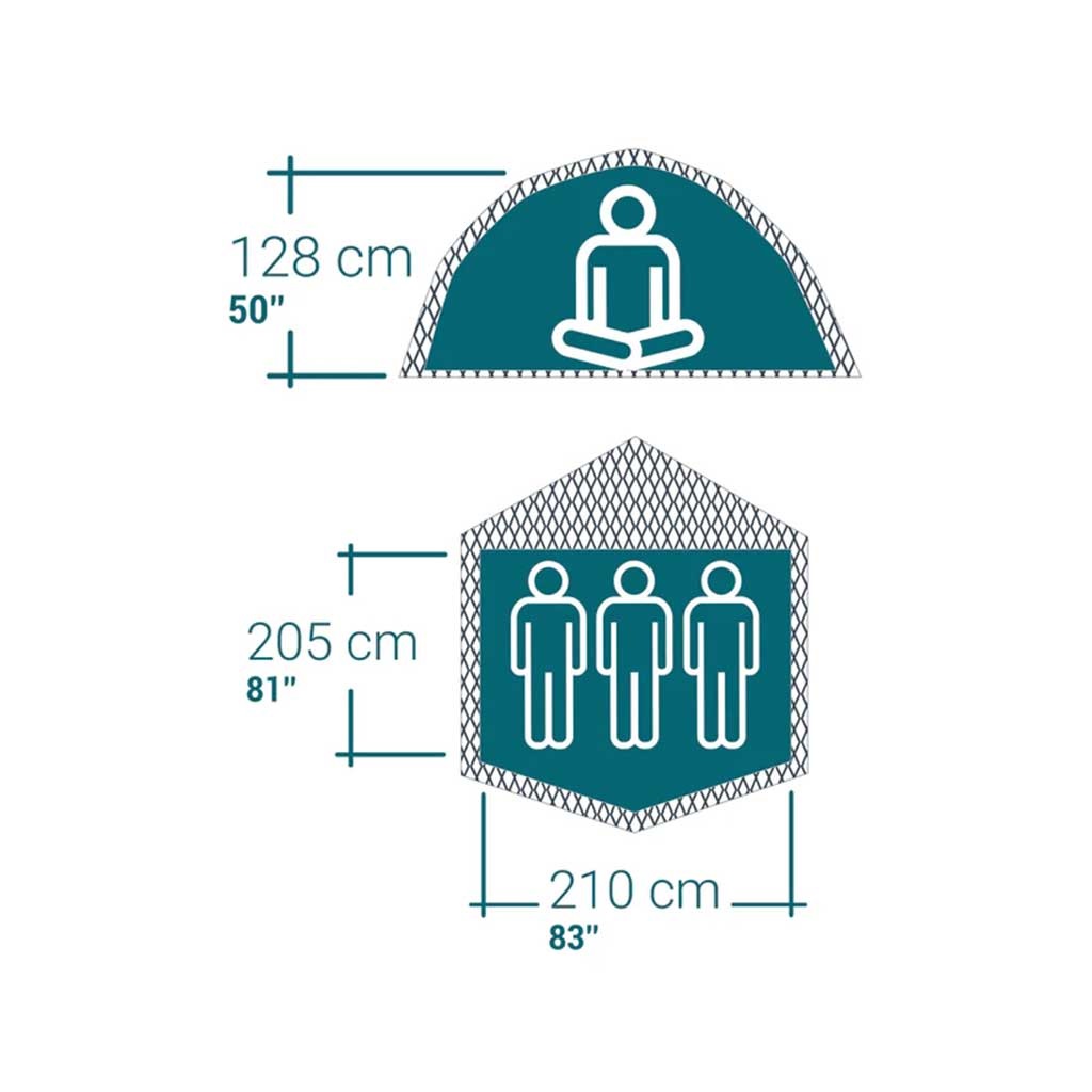 این چادر در برابر 48 کیلومتر باد بر ساعت مقاومت دارد. و با شبیه سازی رگبار با نرخ بارش 200 لیتر بر متر مکعب به مدت چهار ساعت آزمایش شده است. وزن آن 8.2 کیلوگرم میباشد. ابعادش در حالت بسته بندی 85*9 سانتیمتر و در حالت باز 210*205*128 سانتیمتر است. همچنین دارای کیف حمل میباشد.